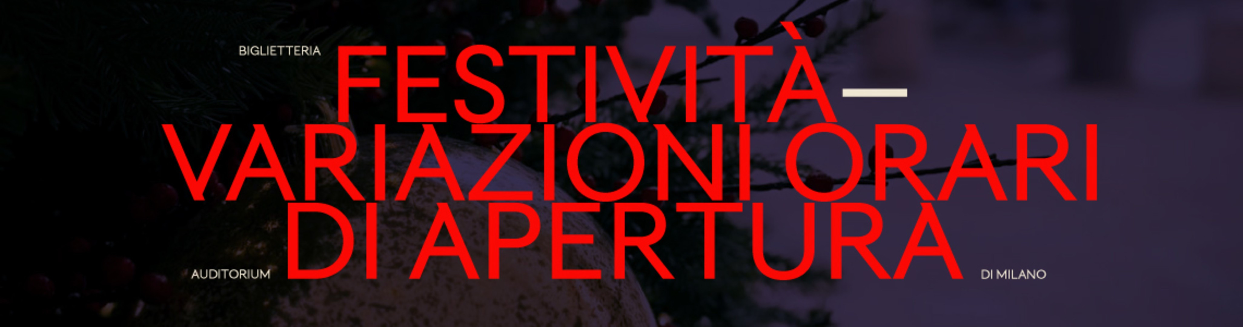 Si informa il gentile pubblico che, in occasione delle festività, la Biglietteria dell’Auditorium di Milano osserverà le seguenti variazioni di orario: