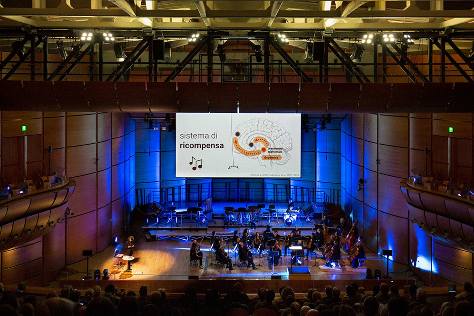 Il pubblico arrivava in Auditorium per una conferenza su musica e neuroscienze, in cui imparare nuove informazioni e ascoltare musica dal vivo. In realtà, abbiamo svolto quello che può a tutti gli effetti considerarsi un esperimento scientifico su larga, anzi larghissima scala (circa mille persone!).
