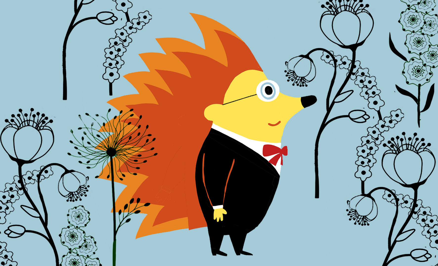 –, con un elegante abito nero, e dettagli ispirati a Mahler, come gli occhiali ellittici e il cravattino a fiocco: una sorta di “divisa” che ne definisce l’identità visiva. Ho scelto una palette essenziale per renderlo chiaro e versatile. Gus è un riccio timido, sensibilissimo ma curioso. Ha una caratteristica visivamente importante: la sua chioma di aculei che è un’estensione del suo sentire, capace di farsi morbida, spinosa o infuocata, come le emozioni che lo attraversano".
