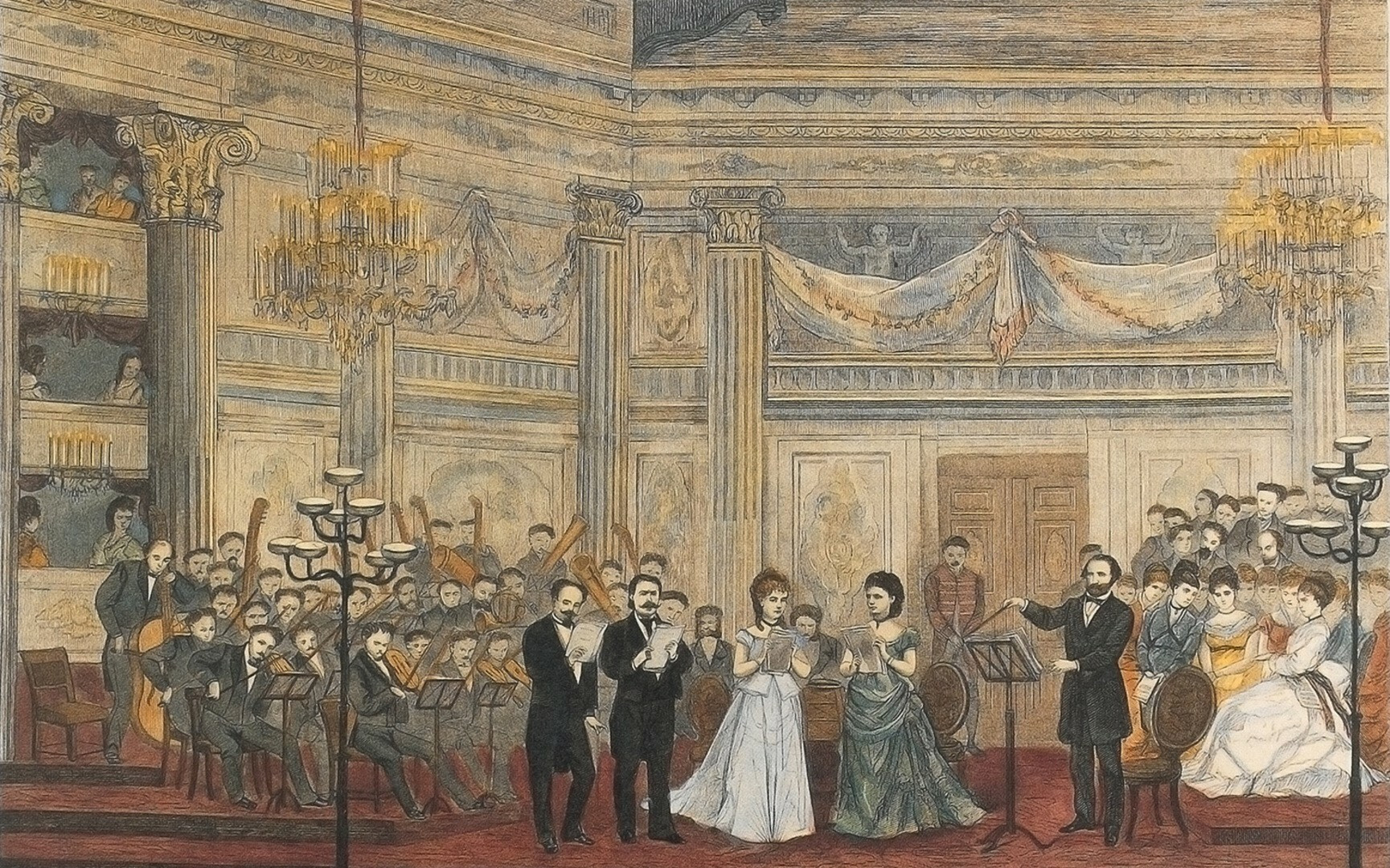 Osvaldo Tofani, Verdi dirige la prima esecuzione del Requiem alla Scala, tavola in “L’Illustrazione Universale”, Milano 14 giugno 1874