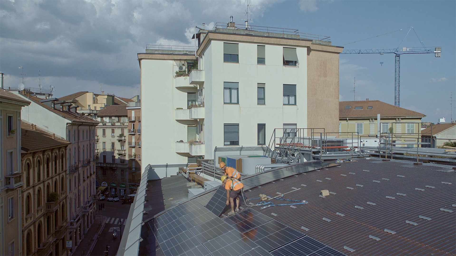 I pannelli fotovoltaici sul tetto dell'Auditorium di Milano Fondazione Cariplo